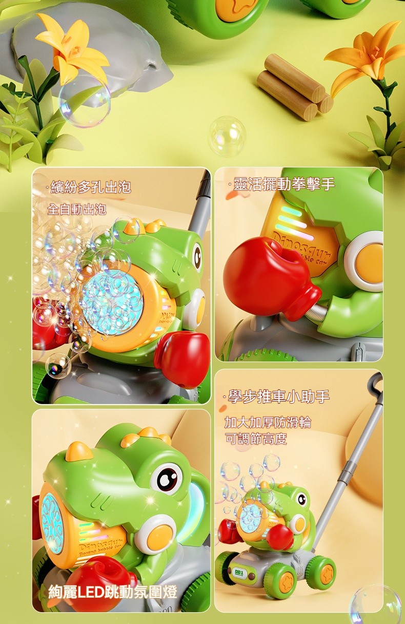 ✅這款「恐龍手推車吹泡泡機」可愛的恐龍造型,寶寶推著往前走,車子就會自動吹出五彩繽紛的泡泡,吸引寶寶追逐、拍打,在歡樂中鍛鍊走路能力。✅無論是室內學步、戶外玩耍,還是擺地攤熱賣,都是超吸睛的爆款玩具!✅