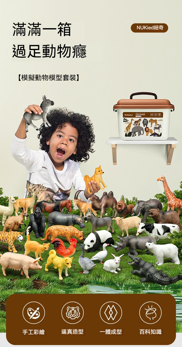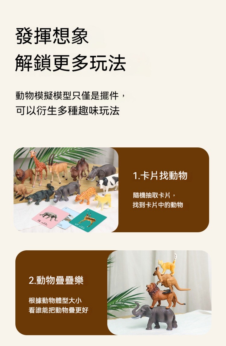 ✨這款「動物夥伴樂園」✨專為兒童設計的仿真動物模型禮盒,將農場動物與野生動物兩大主題完美融合。✨每隻動物都採用立體彩繪工藝,栩栩如生,紋理細膩。搭配精心設計的場景配件,孩子可以自由搭建屬於自己的動物樂園,在玩耍中認識動物、啟蒙認知、激發想像力。✨
