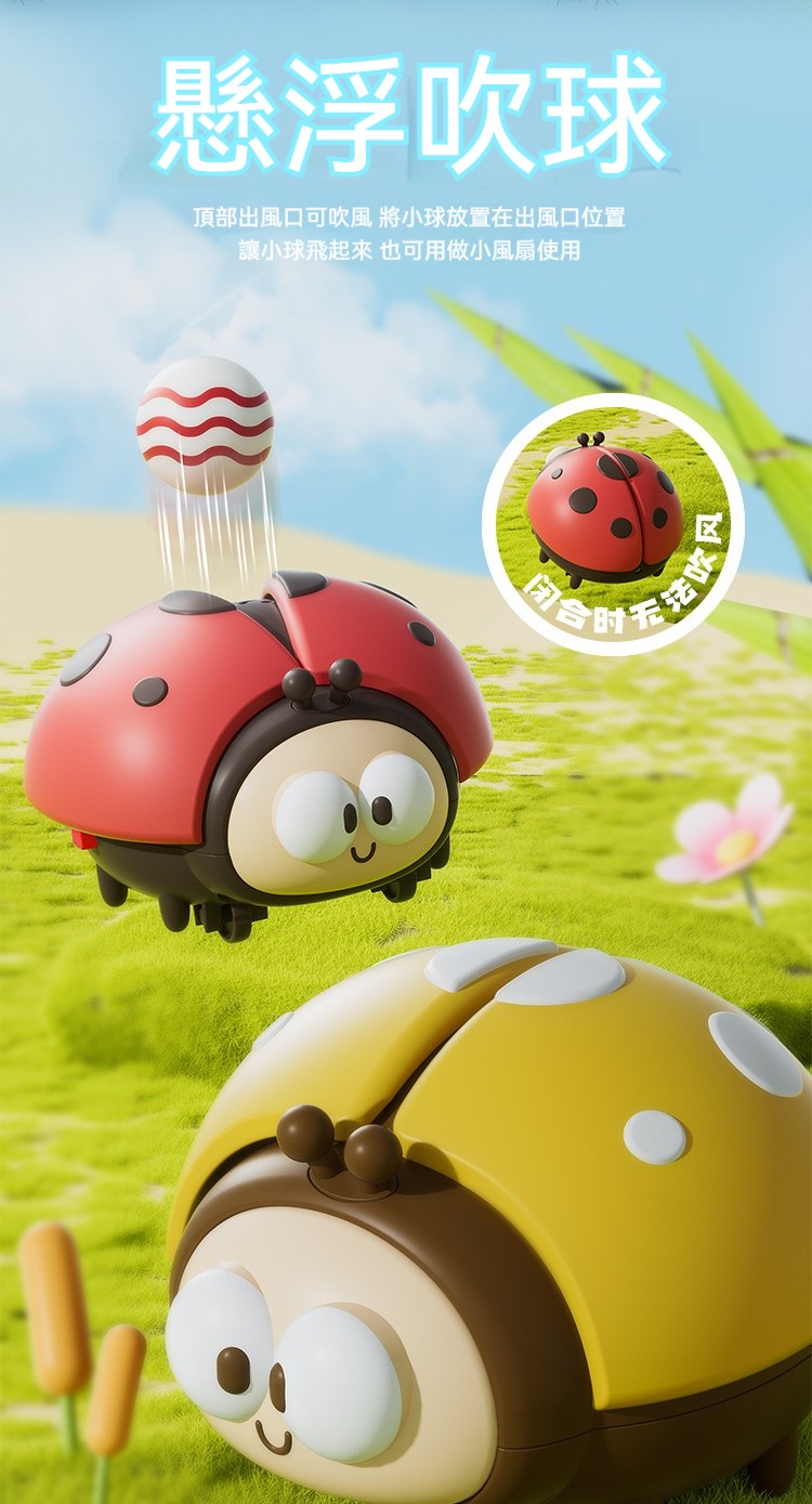 ✅可愛的瓢蟲造型吹球機,會噴出強勁而穩定的氣流,讓輕盈的保麗龍球漂浮在半空中。✅孩子需要盯著小球、移動吹球機、想辦法讓球不掉下來——這個過程看似簡單,卻在不知不覺中鍛鍊了寶貝的專注力、手眼協調與反應能力!✅