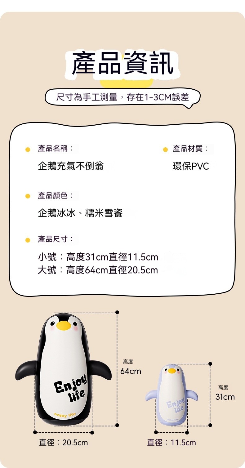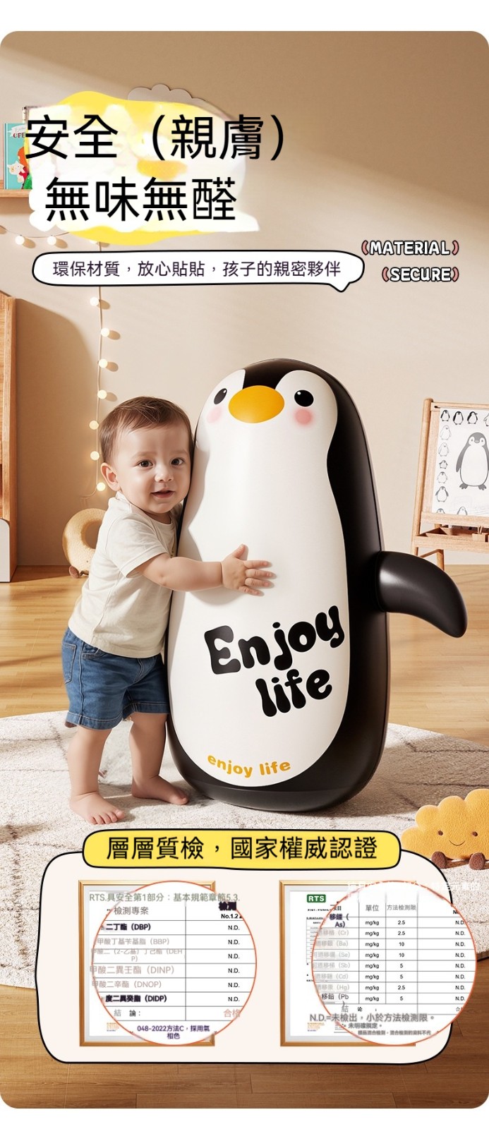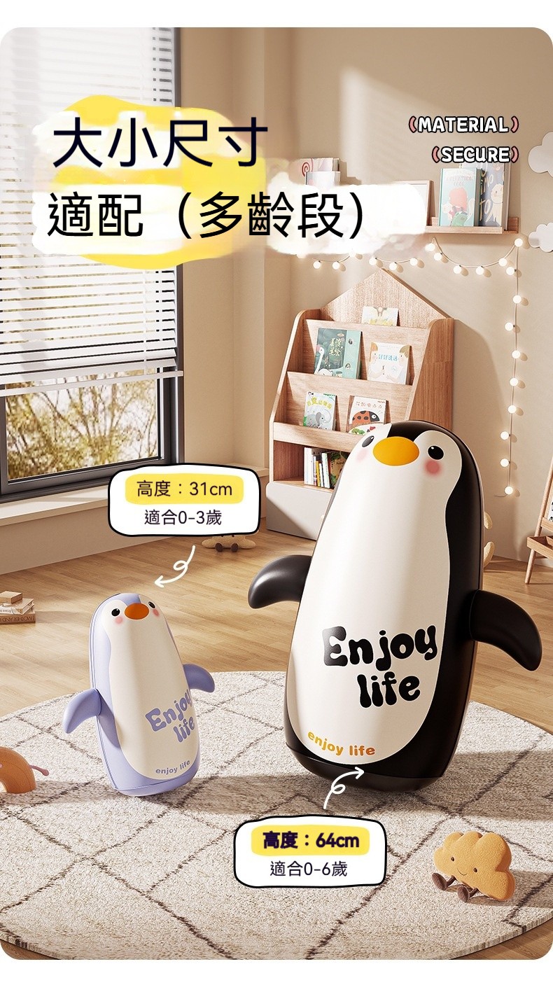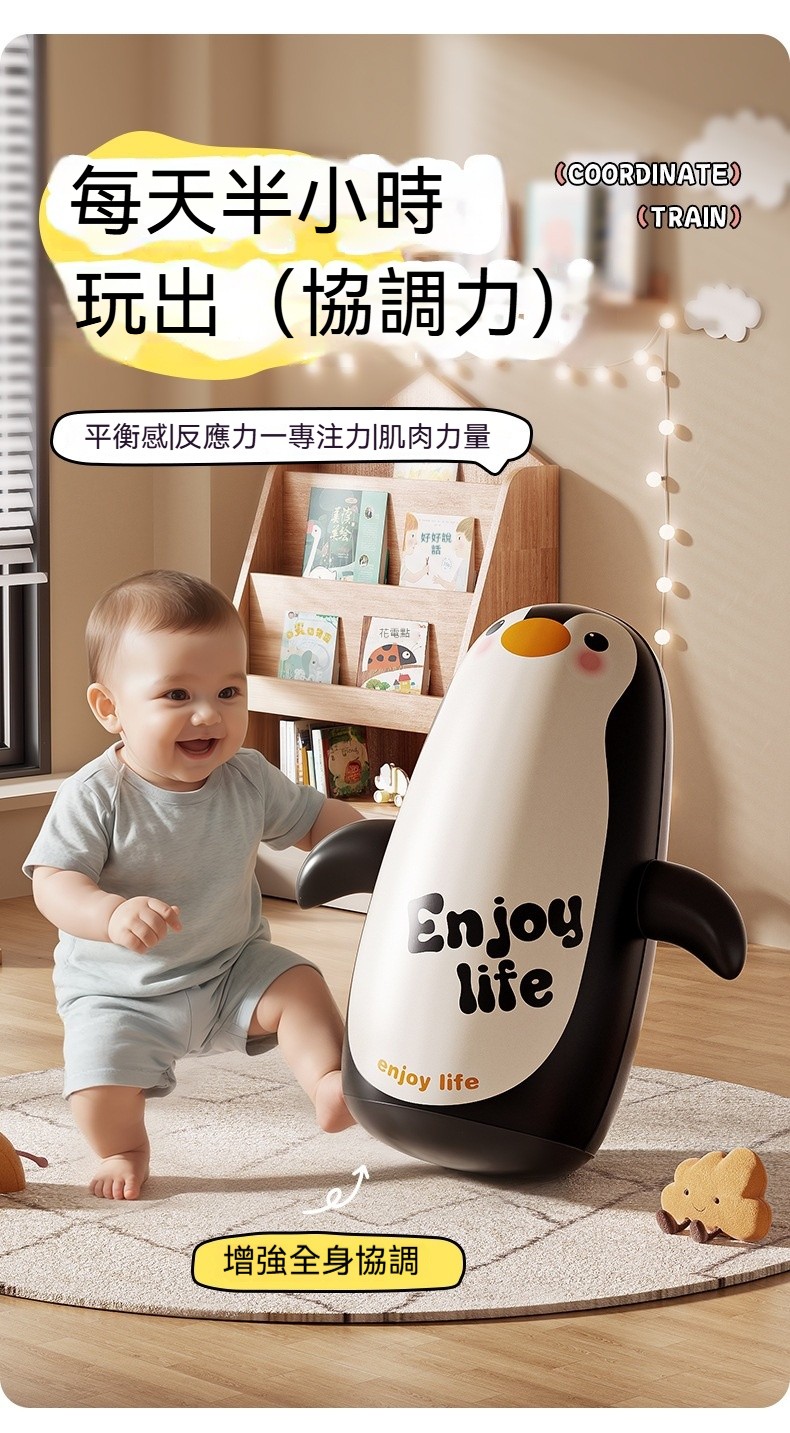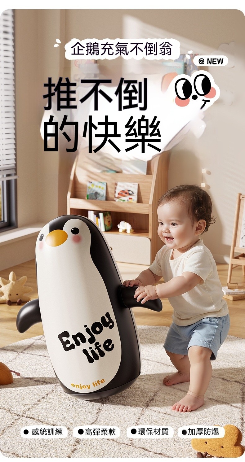 ✅這款「企鵝不倒翁」將可愛的南極企鵝造型與不倒翁原理完美結合。✅充氣設計,輕盈安全,寶寶碰觸也不痛;✅底部加重,重心穩固,怎麼推都會自動回正。✅在搖晃與推拉的遊戲中,鍛鍊寶寶的手眼協調、大肌肉運動與視覺追蹤能力。
