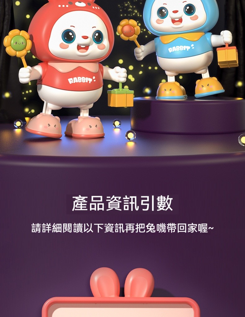 ✨這款「電動跳舞兔子玩具」是一隻會唱歌、會跳舞、會搖頭晃腦的萌寵小兔。✨打開開關,兔子就會隨著歡快的音樂扭動身體、擺動耳朵、轉圈跳舞,逗得孩子哈哈大笑!柔軟的絨毛材質,可愛的造型設計,是陪伴寶寶成長的最佳玩伴✨